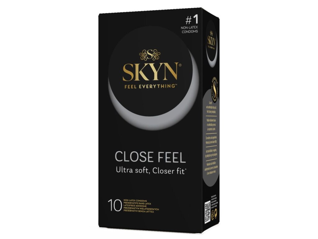 Priehľadné, extra tenké kondómy SKYN Close Feel sú navrhnuté pre tesnejšie priliehanie a intenzívnejší kontakt. Vyrobené zo sensoprenu (polizoprénu), vďaka čomu sú mäkké, pružné a pôsobia veľmi prirodzene. Neobsahujú latex ani zápach – ideálne pre ľudí s alergiou alebo citlivosťou na latex. Kondómy sú lubrikované silikónovým gélom a majú tvar s rezervoárom na konci.
