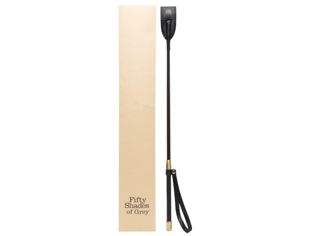 Elegantný a kvalitný Bound to You Riding Crop z kolekcie Fifty Shades of Grey má plácačku vyrobenú zo štýlovej imitácie kože s detailmi v odtieni antického zlata. Dlhá, pevná a pružná rukoväť má pútko na zápästie pre kontrolované pohyby počas vzrušujúceho plácania.